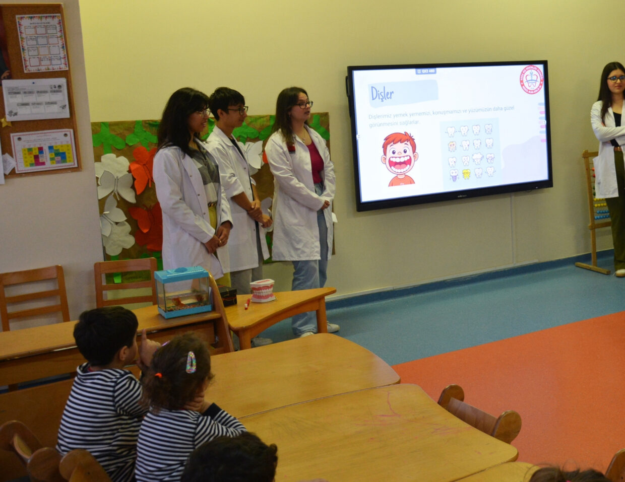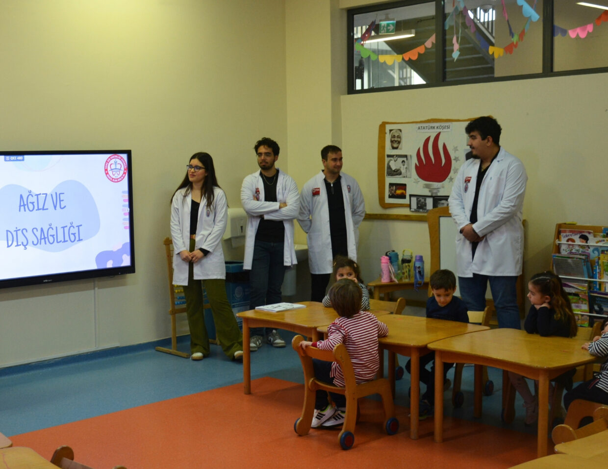 Çukurova Üniversitesi Diş Hekimliği Fakültesi öğrencisi ve aynı zamanda TED Adana Koleji Anadolu Lisesi mezunu olan “meşalemiz” Cansu Karcı ve arkadaşları, Anasınıfı öğrencilerimize ağız ve diş sağlığının önemini anlattılar. Doğru diş fırçalama tekniğini somut bir şekilde öğrenen öğrencilerimizin heyecanı görülmeye değerdi.